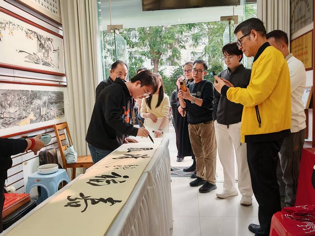 春晖堂内翰墨飘香,暖意融融。案几之上,笔墨纸砚整齐陈列,朱砂“福”字与吉祥春联相映成趣。来自珠澳两地的艺术家与收藏家们凝神挥毫,各展所长:楷书工整隽秀见法度,行书笔走龙蛇显气韵,隶书古朴庄重蕴韵味;绘画作品中,山水苍润意境悠远,花鸟灵动生机盎然,每一笔墨都承载着对传统文化的敬畏,每一抹色彩都饱含对新年的期许。收藏界同仁则借机交流鉴赏心得,分享珍品背后的文化故事,让艺术交流与收藏品鉴相得益彰。